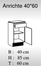 Küchen Anrichte TOP 40x60cm, Weiß / Weiß