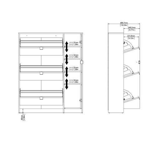 Schuhschrank SHOES, 3 Klapptüren und 1 Tür - Eiche/Hochglanz Weiß